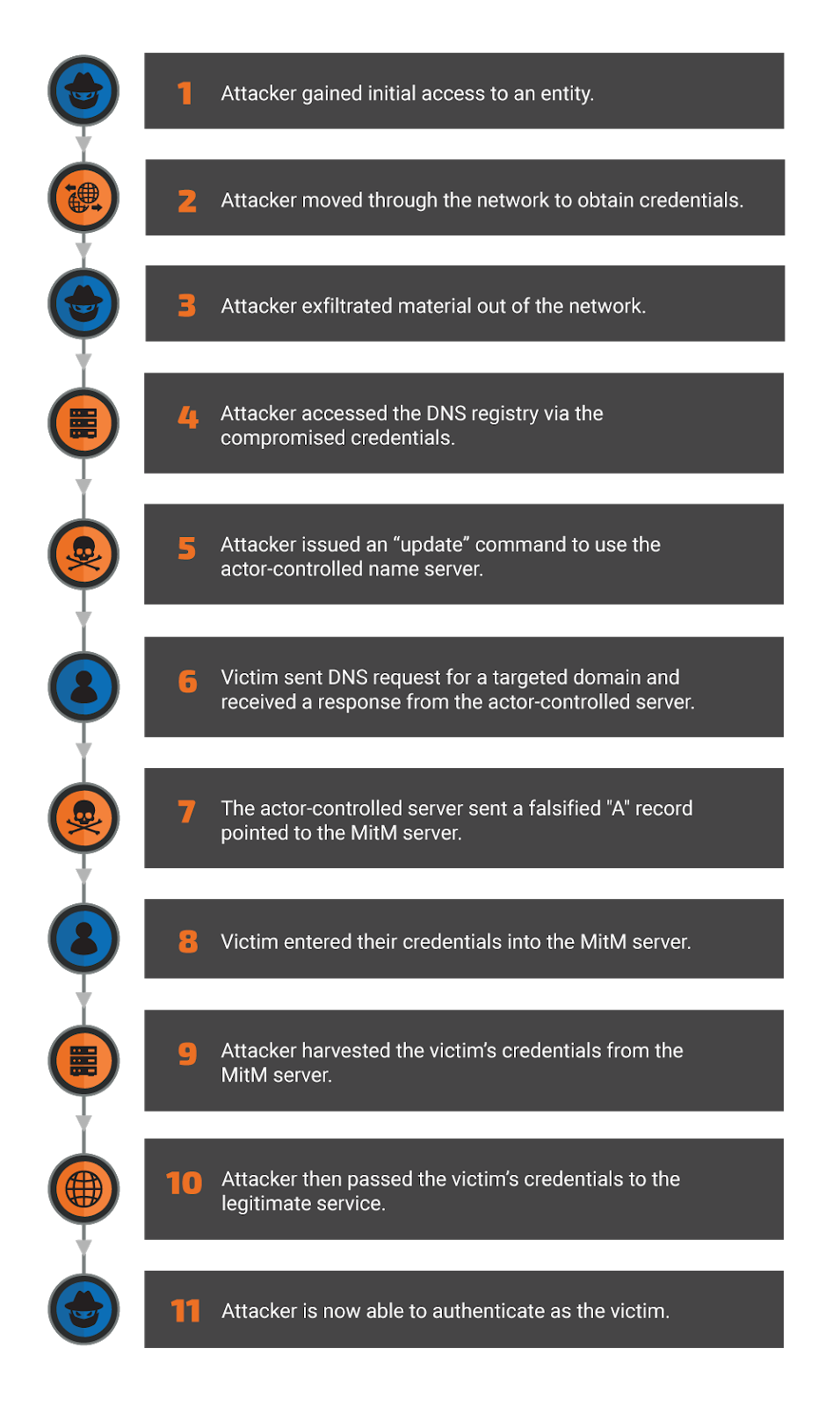 下图说明了我们如何相信海龟行动背后的角色使用DNS劫持来实现其最终目标。