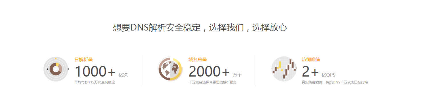 帝恩思作为安全行业的翘楚,多年以来,帝恩思(51DNS.COM) 凭借安全、智能、高效的产品特性及完善的客户服务体系,已为超2000万个域名提供DNS的域名服务。