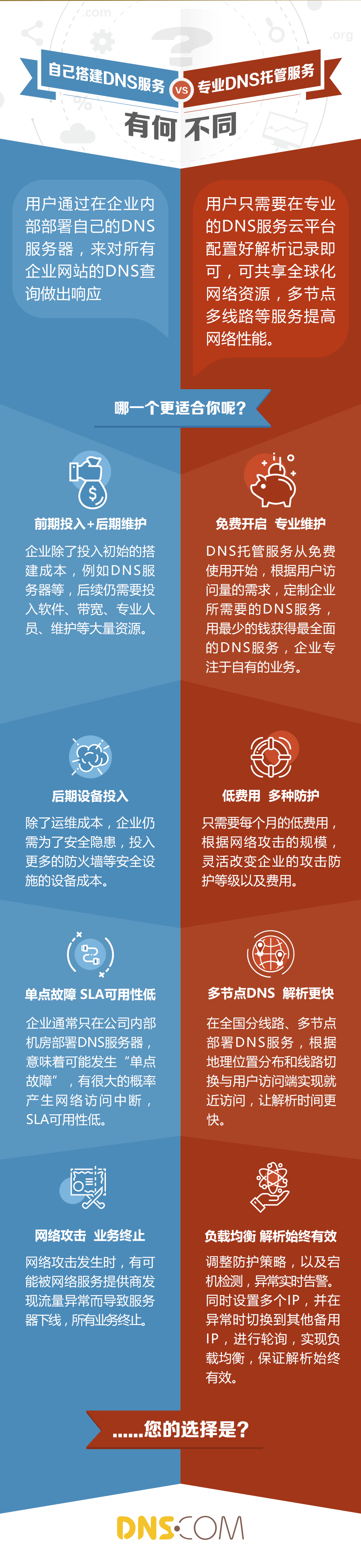 或许您想要知道的是 “自己搭建DNS服务”和“专业的DNS托管服务”有何区别?