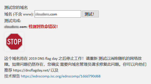 在2019年2月1日后,对于不支持EDNS协议的授权DNS服务器,将会被Google、Cloudflare、Cisio/OpenDNS、ISC/BIND等公共DNS、递归DNS标记为服务不可用,从而导致域名无法正常解析。