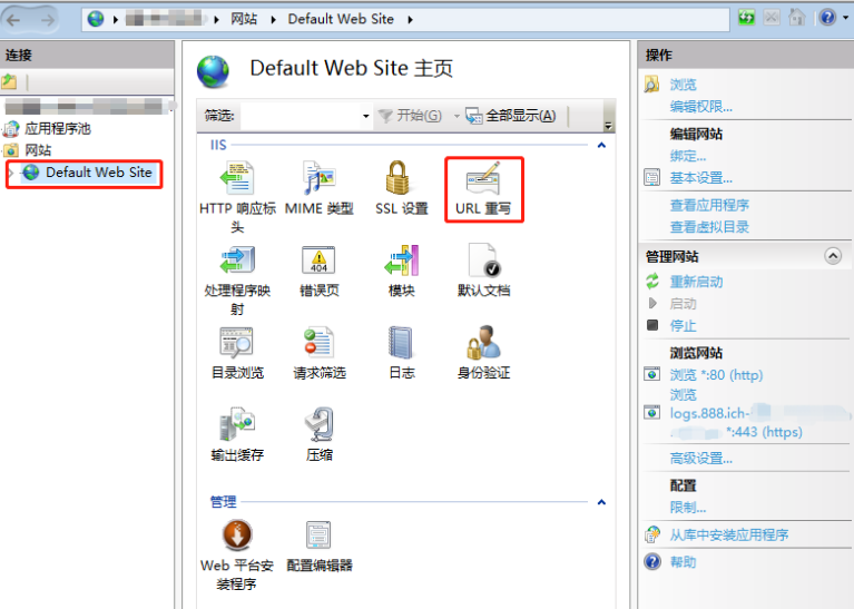 2.选择网站下的站点名称,双击打开 “URL 重写”。如下图所示: