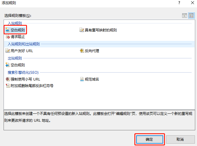 4.在弹出的 “添加规则”窗口中,选择【空白规则】,单击【确定】。如下图所示: