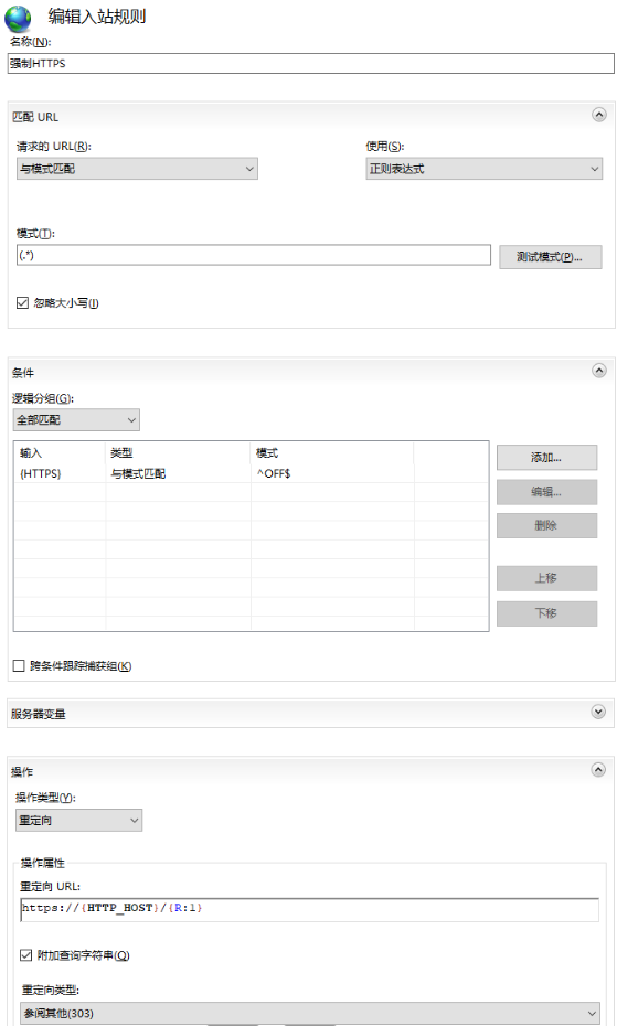 ¢重定向 URL:https://{HTTP_HOST}/{R:1}。