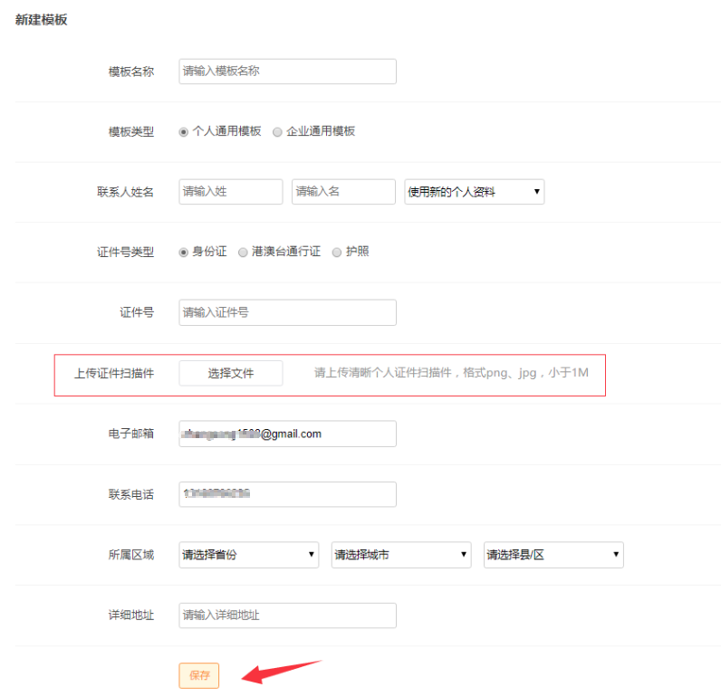 7、填写个人信息,完成实名认证点击保存。(进行实名认证需要提交证件号并上传身份证扫描件。)