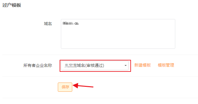 9、域名过户完成后点击保存即可,待审核通过域名将自动解锁,即可正常解析。
