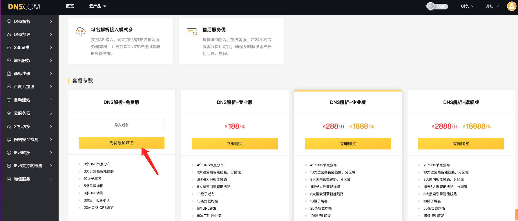 1、登录51DNS.COM 后,点击右上角【控制台】