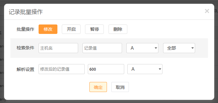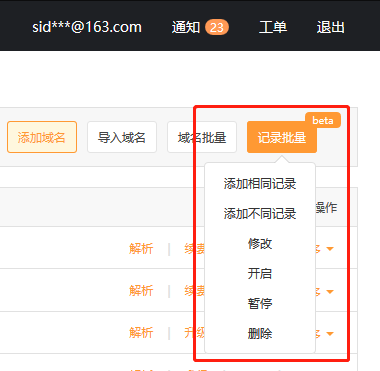 该功能可以对选中域名的解析记录进行批量添加、修改、删除等操作。